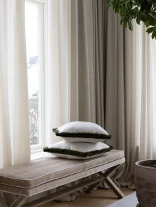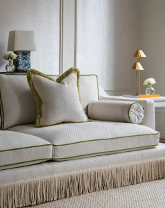 Structured fabrics, silky trims, textured linens, reflective surfaces and elegant layering create depth and personality. Each item can be tailored in tone, trim, fabric and detail – allowing our clients and the followers of The Interior Guide to shape pieces that mirror their own curated lifestyles and global sensibilities. The result is a collection that feels like editorial couture translated into furniture: feminine yet architectural, modern yet timeless, refined yet expressive. A world where every curve, seam and surface is intentional, designed to meet the expectations of a community that knows, loves and demands beauty at its highest level.