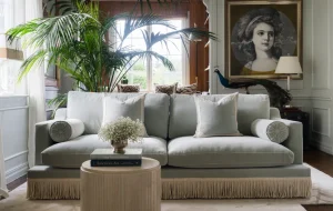 We lean back in soft linen, with a fresh mint tea in hand. The safari green piping throughout the sofa design adds smartness to a comfortable piece. The hand printed Fermoie fabric is reminiscent of the restaurant setting at Marbella Club. Multiple hand made pieces of comfort lay out a collection that is easy to pair and even easier to enjoy. Marbella Club is about vacation, about relaxation and entertainment at home. An ode to the time and space that is calm and nourishing in a time when we need it most.