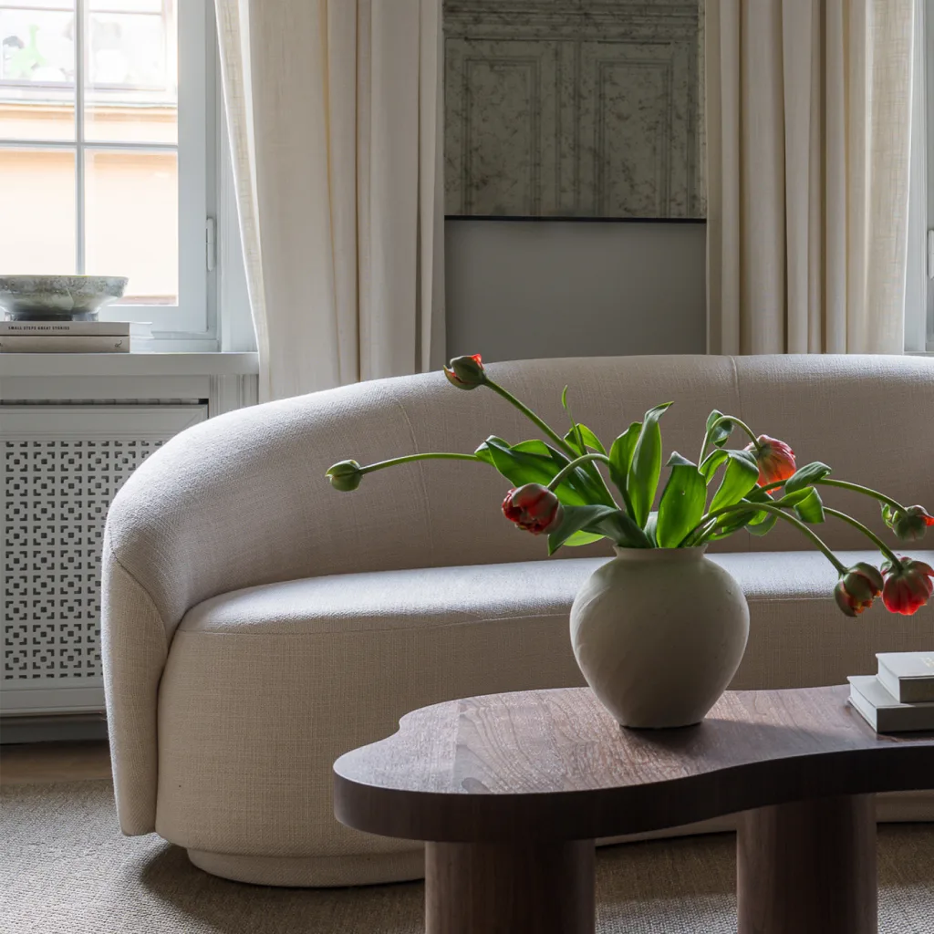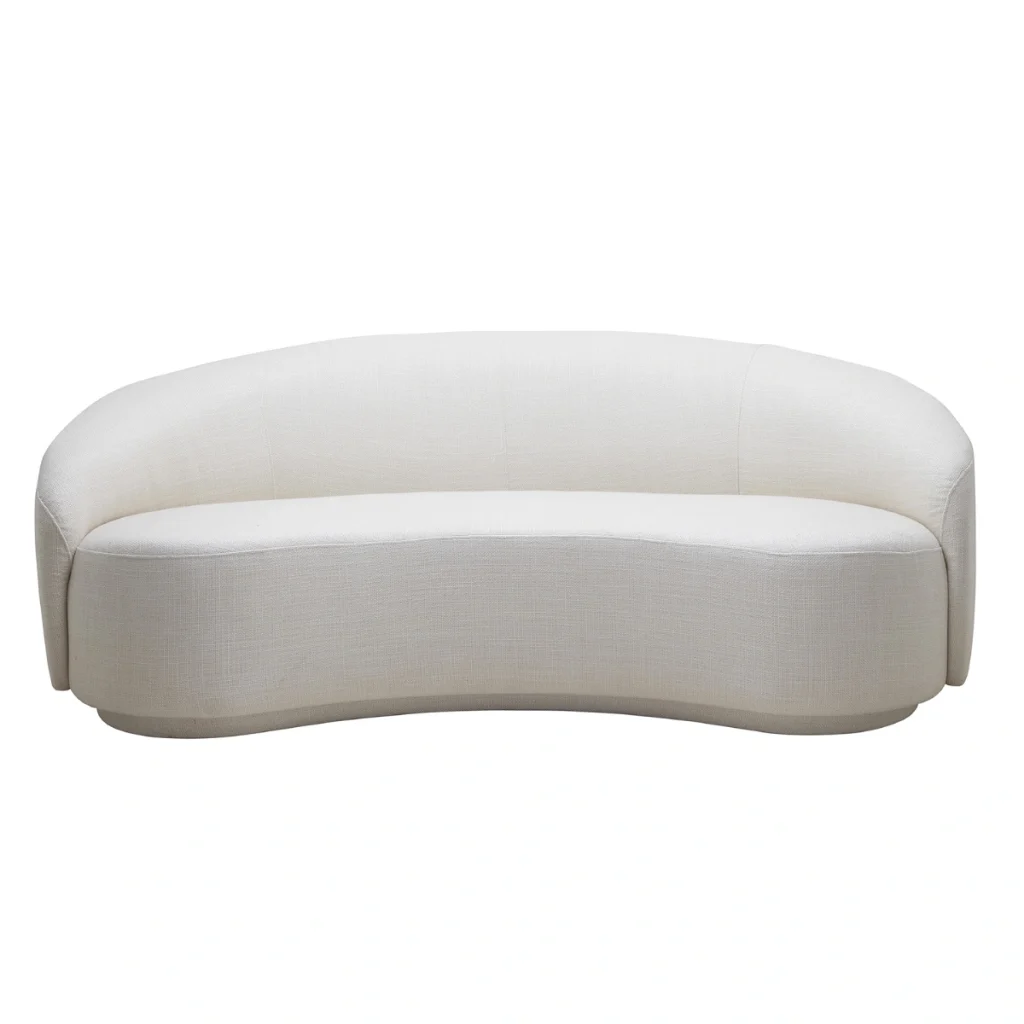 We like curves. Florian has them. This curved and sleek sofa is the perfect piece to add a design look in your home and add interest due to the organic shape. It comes in a customizable size but standard is 210 which allows for hosting guests. You want it larger, smaller? Let us know. Florian is easily transitioned from a sleek home in light fabrics, as it could be a centerpiece if upholstered in a fabulous patterned fabric. Mix Florian with the Florian chairs for a great seating area that will last years to come.