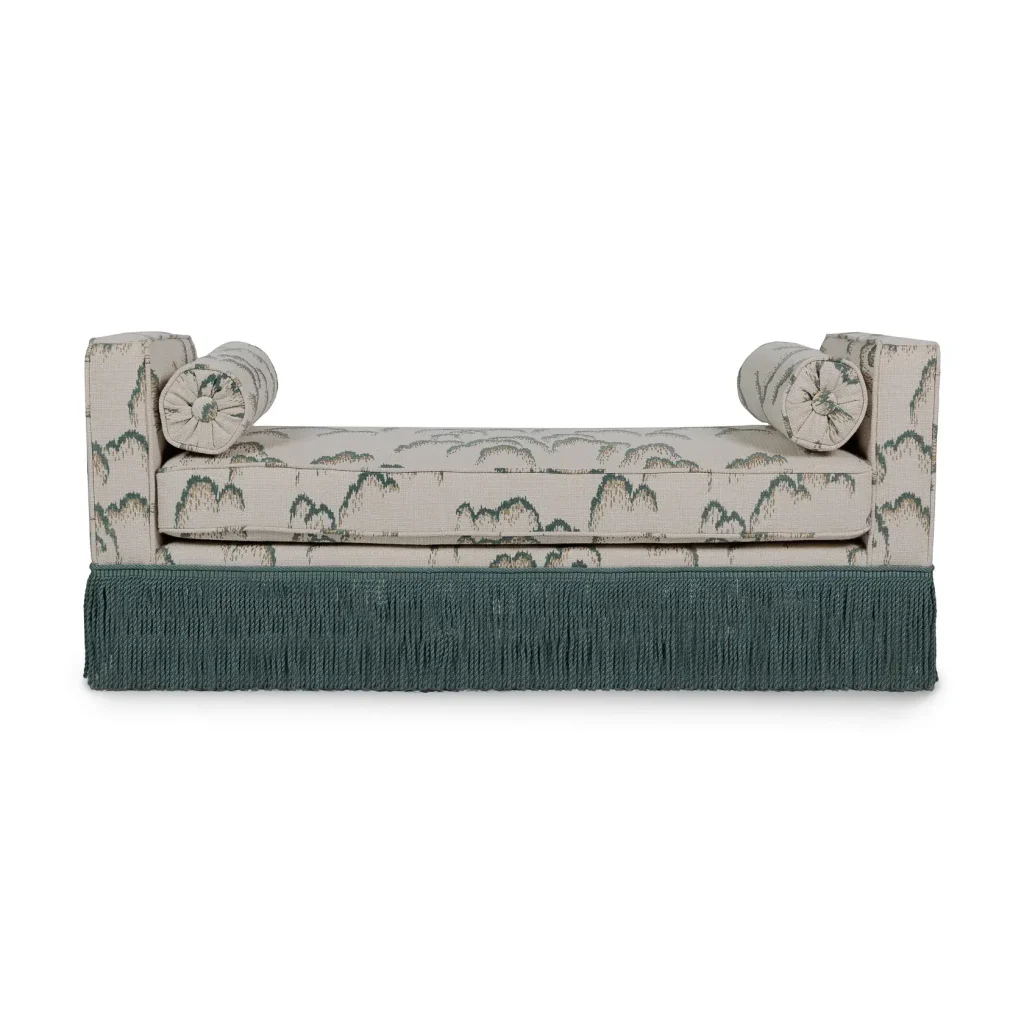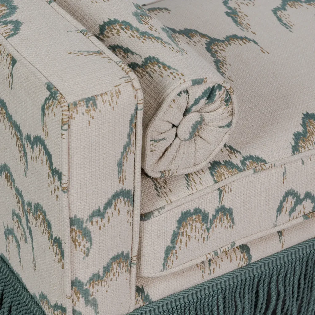 This piece with a luxurious fringe from Samuel & Sons is made in the stunning fabric "Lilaz" from Dedar. If choosing any other of the four colors we will of course match the color of the fringe with the color of the pattern.