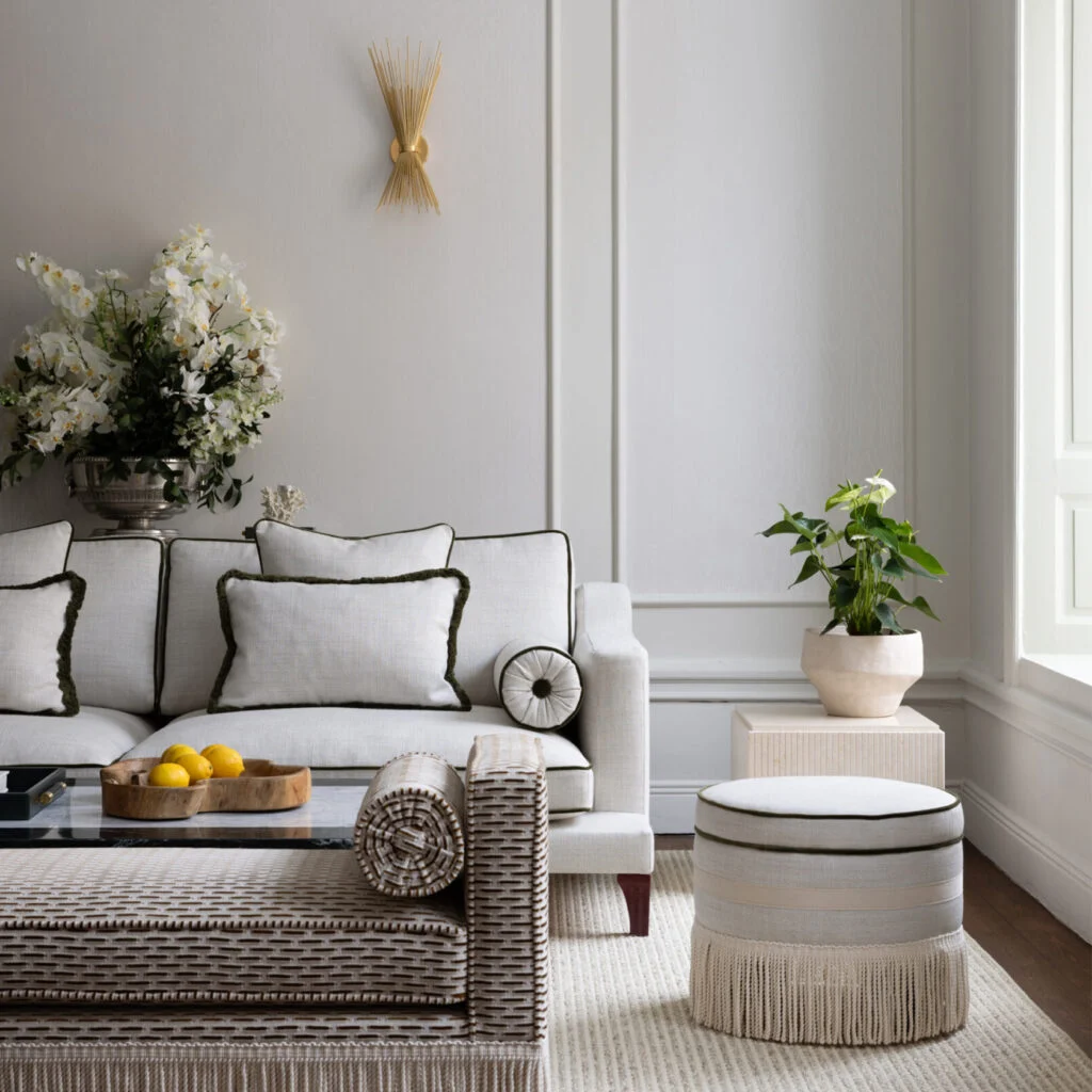 Laurent Pouf - Easy Lustre Fabric, Velvet Piping & Fringe