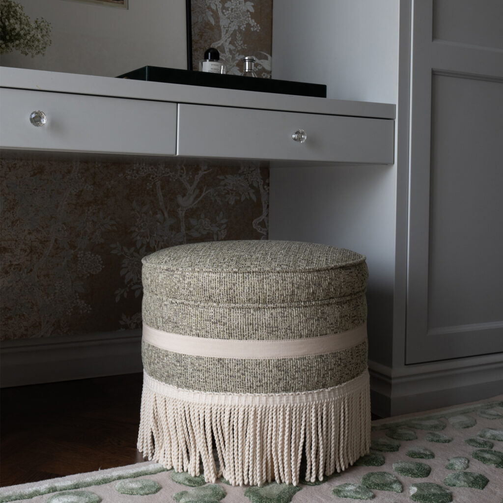 Pouf - what a weird name for a piece like this. But it is what it is. We’d call it an eye-catcher. Laurent is as versatile as it gets. In the walk in clo- set, in the seating area, used as a side table with coffee books stacked on top. Laurent is there for it. Just don’t call him pouf to his face, he’ll get offended. Laurent sometimes like to show off with fringes and he likes his skirt. The rounded legs are also a favorite for a more modern look. Want him bigger (can’t blame you) that is possible of course. Standard size is 50cm in diameter but larger dimensions are possible. This pouf is made in a beautiful Portuguese fabric with structure and comes with fringe and a trim across the torso. Legs in solid wood. Handmade in EU.