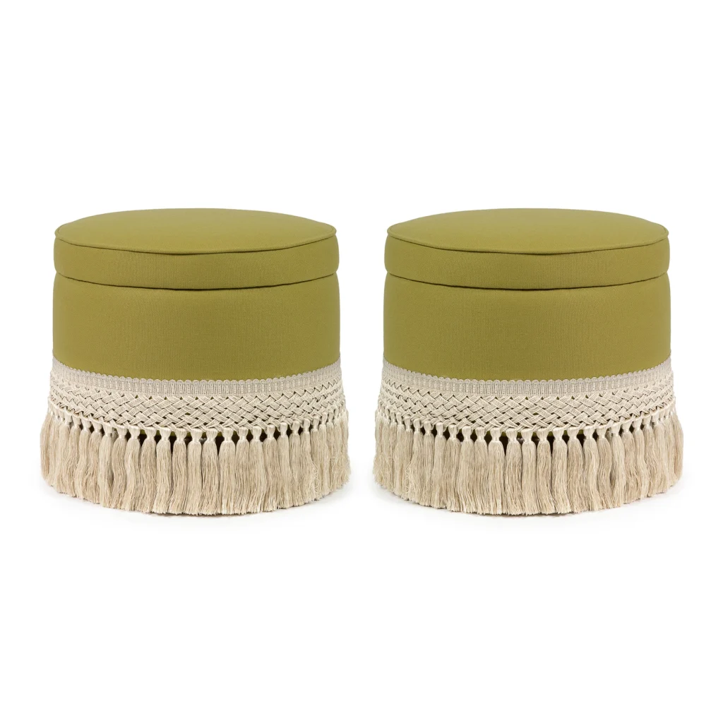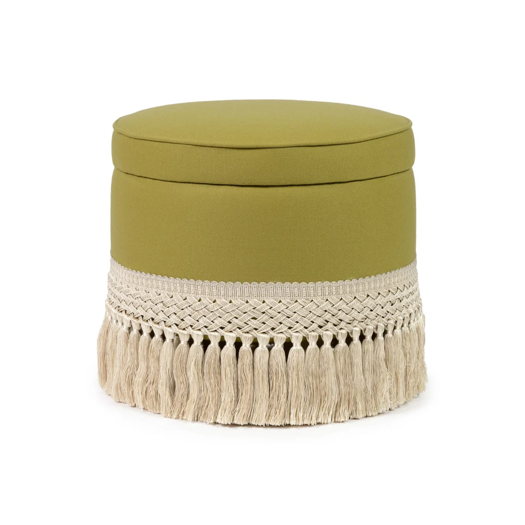 Laurent Pouf - Viggo Agave Fumée by Élitis & Rouen Tassel Fringe