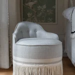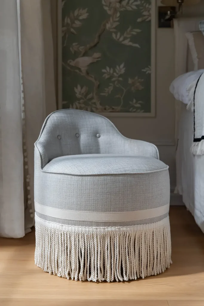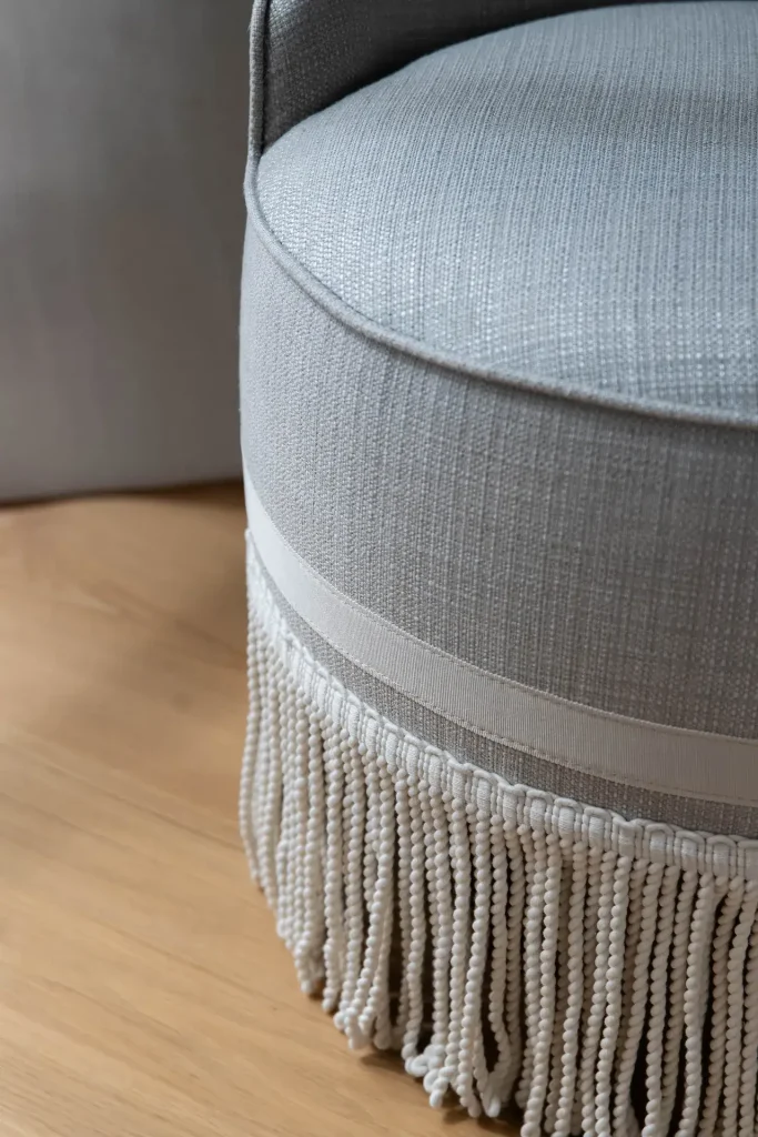 Bring out the Hollywood star in yourself! Our LOU vanity stool is an exquisite piece of furniture designed to add style, elegance, and comfort to one's vanity area. It is crafted with high-quality materials and attention to detail, showcasing fine craftsmanship. The design of Lou vanity stool is typically plush and ornate, featuring intricate pipings, decorative accents, or embellishments. Comfort is key for our Lou, as it has padded seats and backrests, providing an indulgent seating experience. Ultimately, Lou is not 'just' a functional piece of furniture but also a statement piece that enhances the overall aesthetics of a vanity area, bringing a sense of opulence and refinement to the space. Made in Europe.