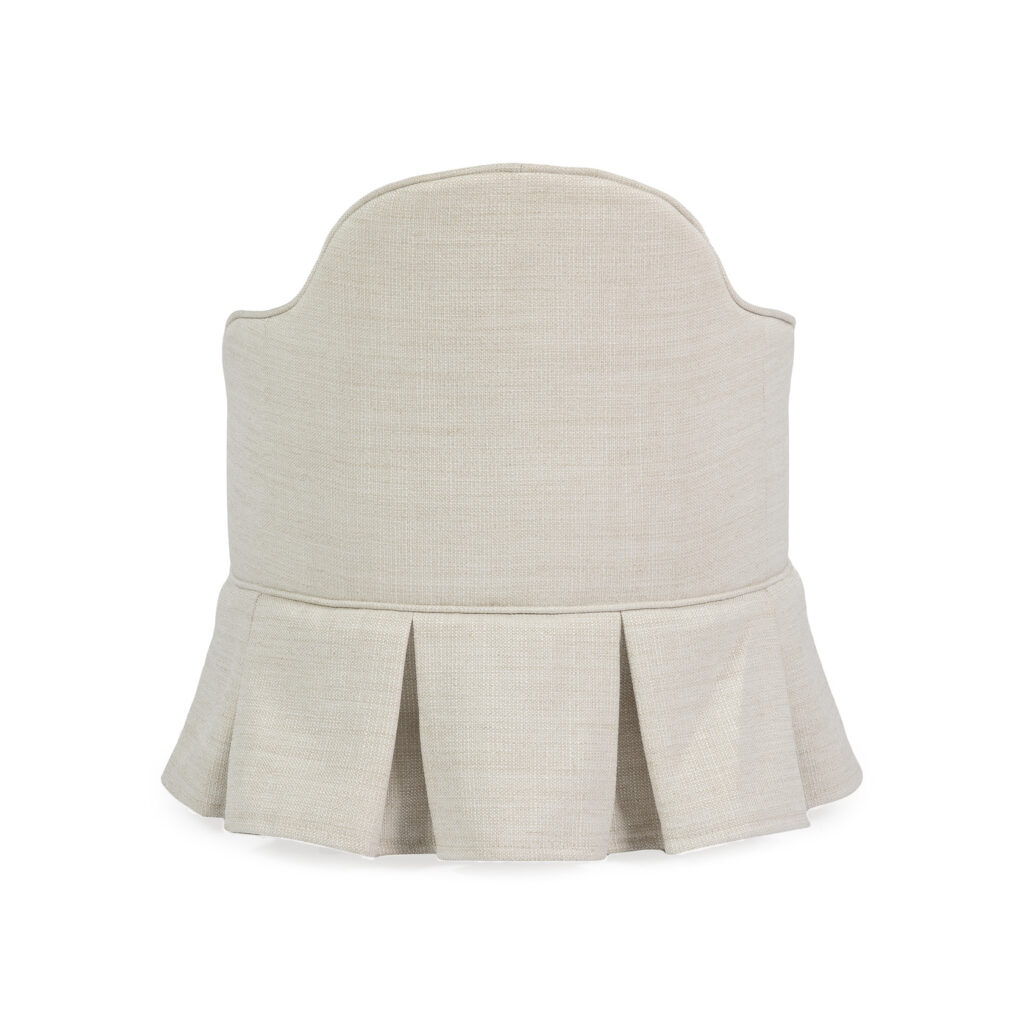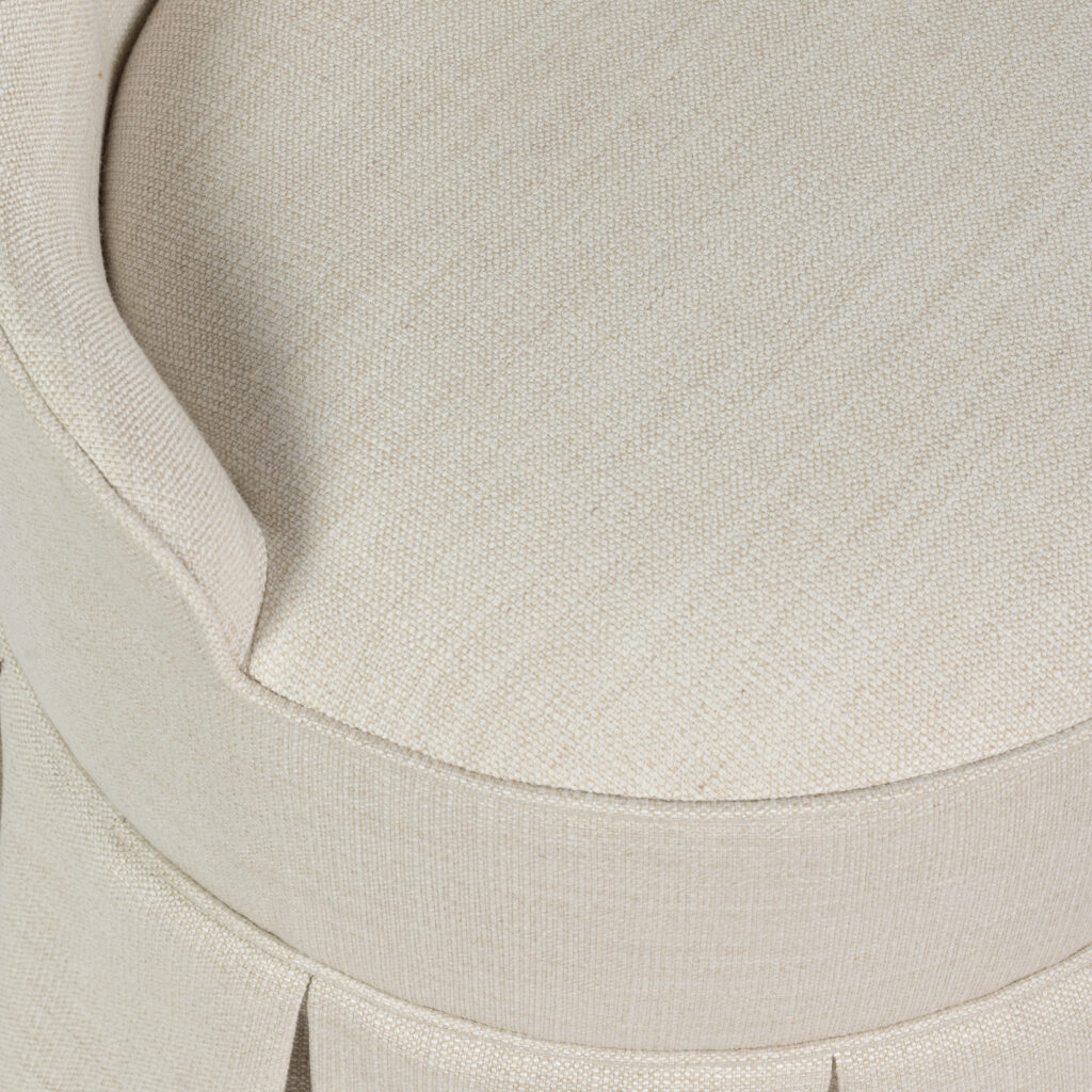 Comfort is key for our Lou, as it has padded seats and backrests, providing an indulgent seating experience. The upholstery is somewhat lustrous linen, The base of Lou vanity stool is made of high-quality solid wood which adds stability and durability to the piece. Ultimately, Lou is not 'just' a functional piece of furniture but also a statement piece that enhances the overall aesthetics of a vanity area, bringing a sense of opulence and refinement to the space. The choice of fabric on this skirted Lou is our popular easy clean fabric "Easy Lustre" in color Almond. Made in EU.