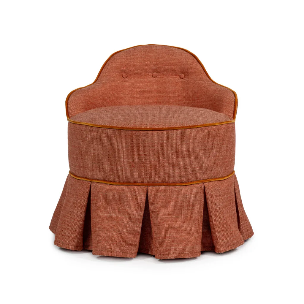 If Hermes would ever do a Lou (God, we hope not, the competition would be fierce) this would be it. Orange linen fabric with a bright orange velvet trim makes this Lou stand out - the perfect vanity chair suitable for everything from putting on make-up or just by itself to be adored by everyone.