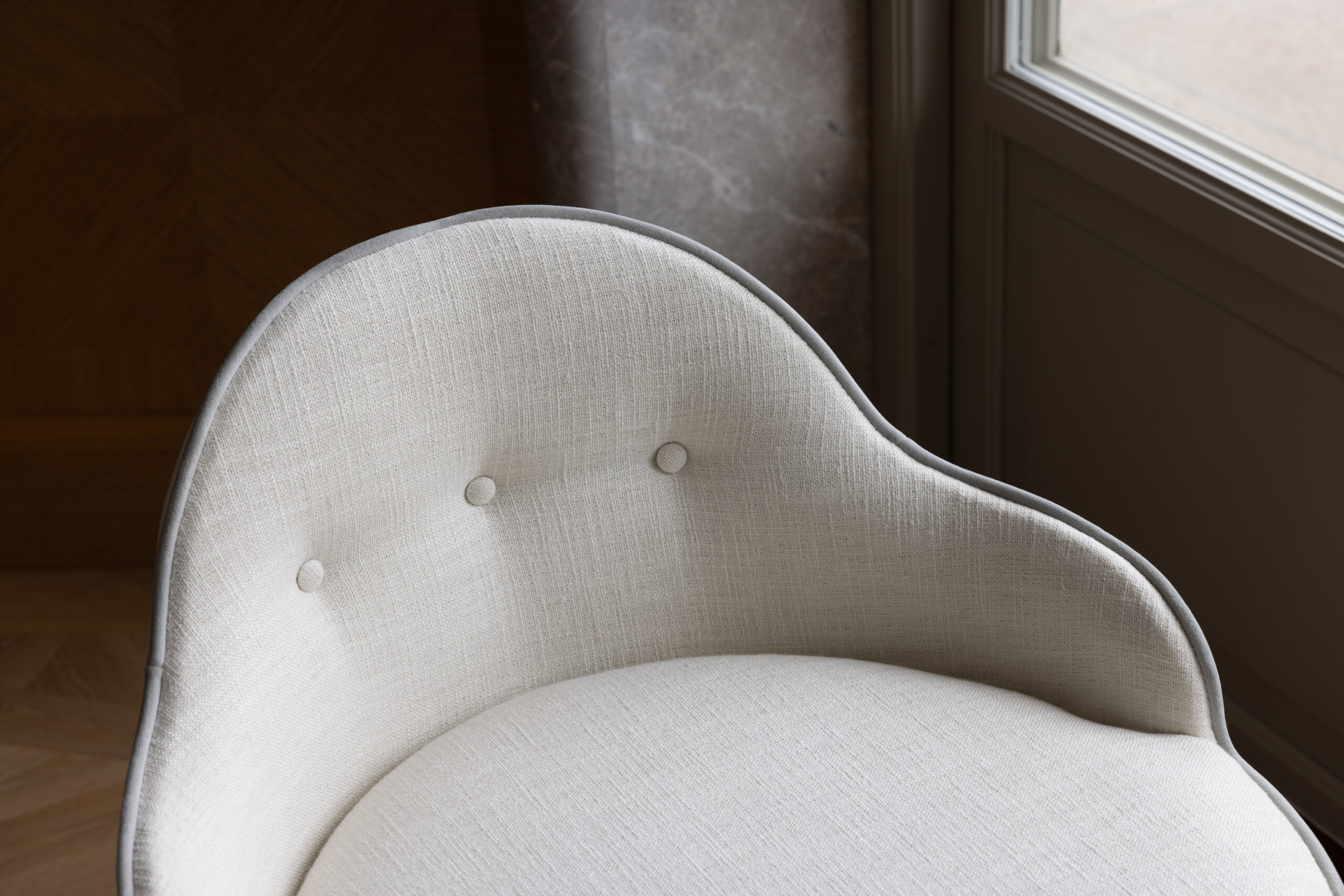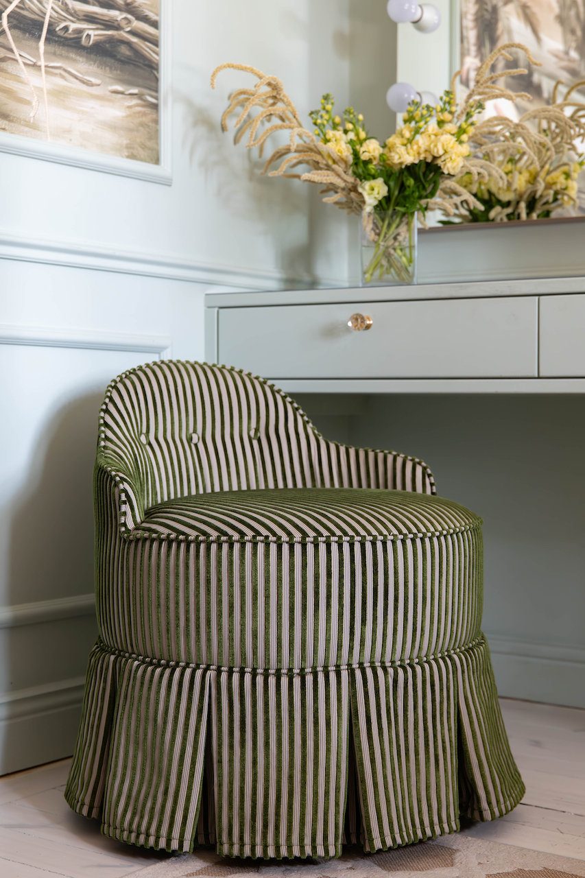 Bring out the Hollywood star in yourself! Our LOU vanity stool is an exquisite piece of furniture designed to add style, elegance, and comfort to one's vanity area. It is crafted with high-quality materials and attention to detail, showcasing fine craftsmanship. The design of Lou vanity stool is typically plush and ornate, featuring intricate pipings, decorative accents, or embellishments. Comfort is key for our Lou, as it has padded seats and backrests, providing an indulgent seating experience. Ultimately, Lou is not 'just' a functional piece of furniture but also a statement piece that enhances the overall aesthetics of a vanity area, bringing a sense of opulence and refinement to the space. Made in Europe.