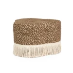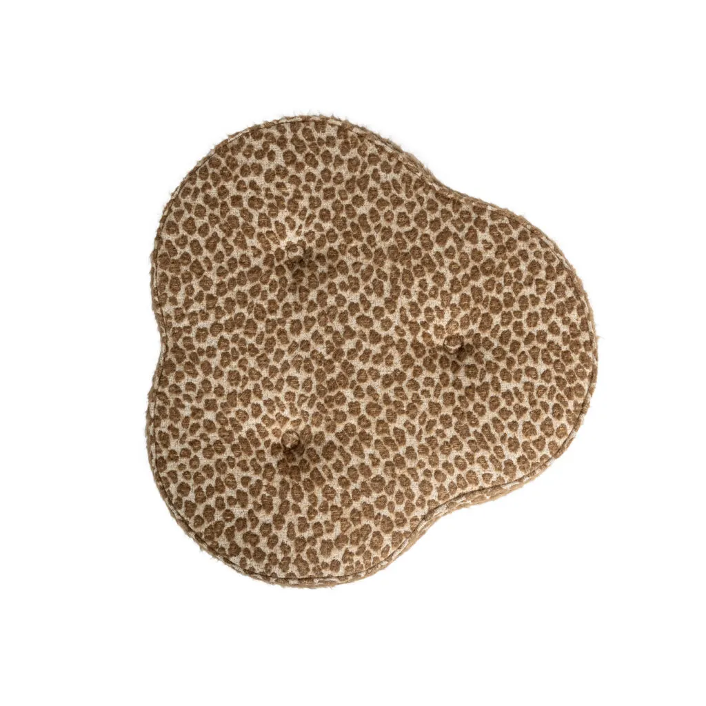 Meet Lucky, a charming clover-shaped pouf and a playful twist on the traditional round pouf and Laurent. Decorated with a fringe for added wow-factor, it's versatile enough to enhance any space — from living rooms to bathrooms or dressing rooms. Upholstered in a beautiful structured leo fabric from Elitis it fits as nicely in a living room as it does a walk-in closet. Lucky is like the necklace to nail the outfit. This piece belongs to the collab collection between RIJD and Mimi Basart from "The Interior Guide". Made in EU.