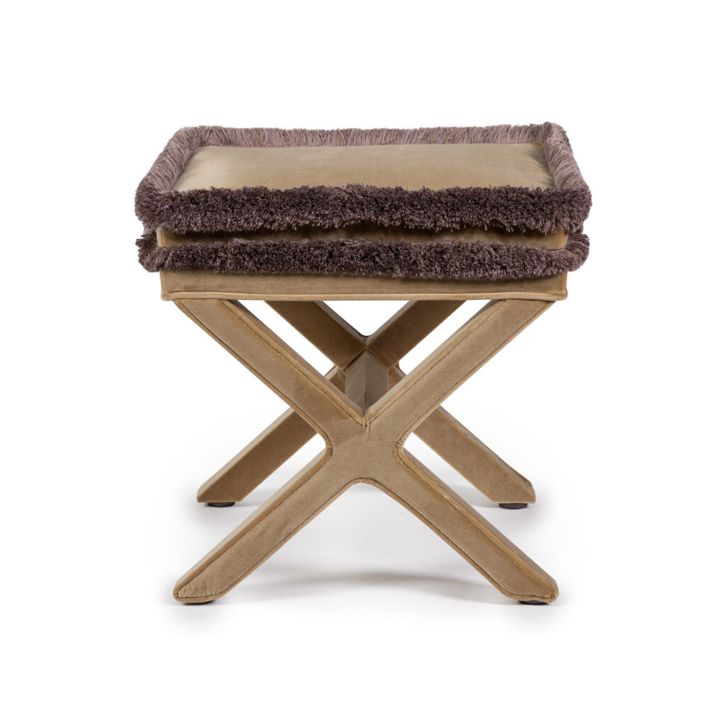 Marcel X Bench - Beige Velvet With Brush Fringes