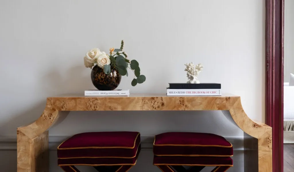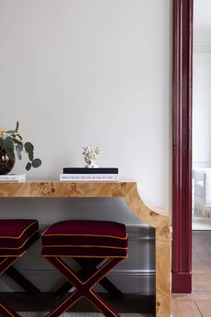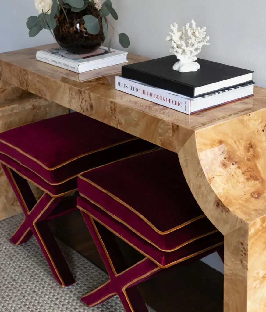 Marcel X Bench - Burgundy Velvet & Ochre Piping