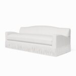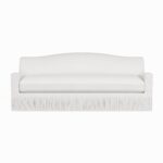 Our newest addition of sofas to our collection features a scalloped skirting (or as always comes with the possibility for fringes or exposed legs) curved backrest, slightly curved armrests for comfort and style. Nico sofa is handmade in Europe, seating filled with down for superior comfort with a foam core to allow the cushions to pop back up after a long afternoon on the couch.