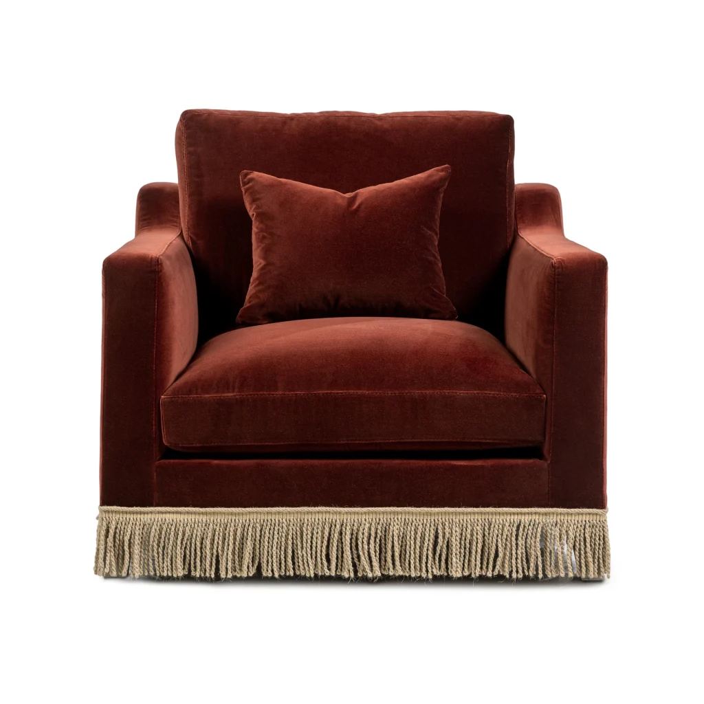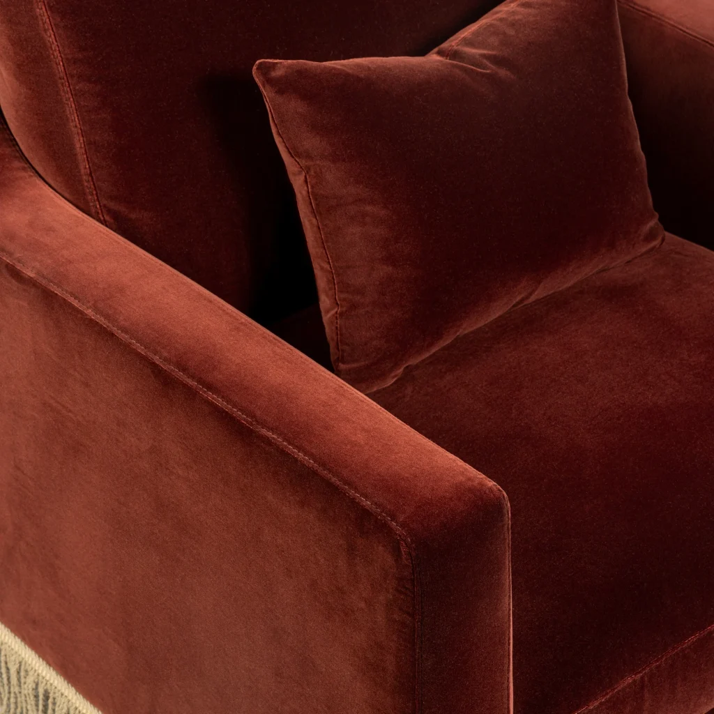 Orlando Lounge Chair - Rust Velvet & Jute Fringe