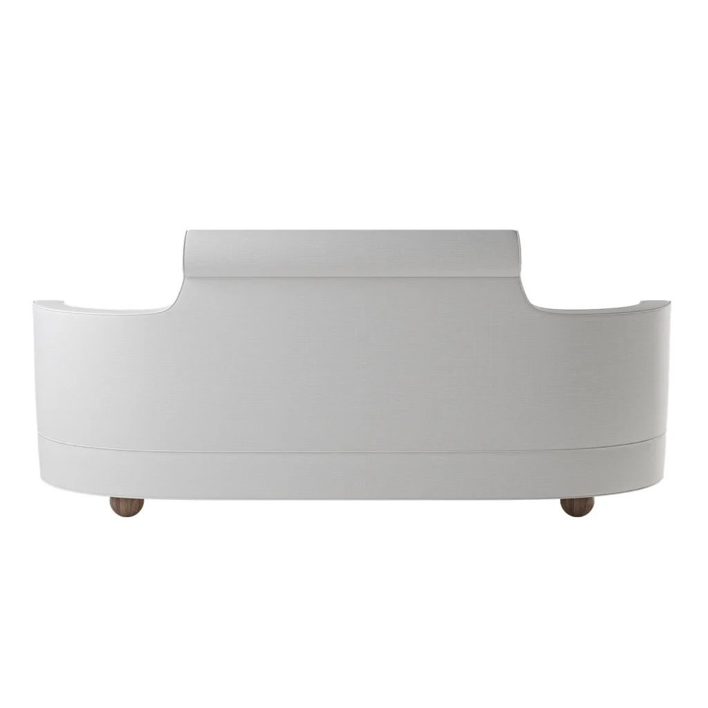 Ralph has curved armrests and back, upholstered firm seating and a steady base. It comes with the option of adding fringe for the Victorian-era lovers, or leave them be and add round legs that evokes a much more modern look. The tailored look is what makes Ralph unique. Also the fact that this is not a purposeful sofa it is an accessory sofa. Ralph is the jewel of a room, like the brooch on a jacket lapel, utterly useless in the very sense of the word yet undoubtedly classy. Made in EU.