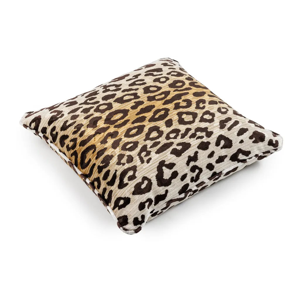 This luxurious RIJD decoration pillow with piping is made in a structured velvet with leopard print from Romo.