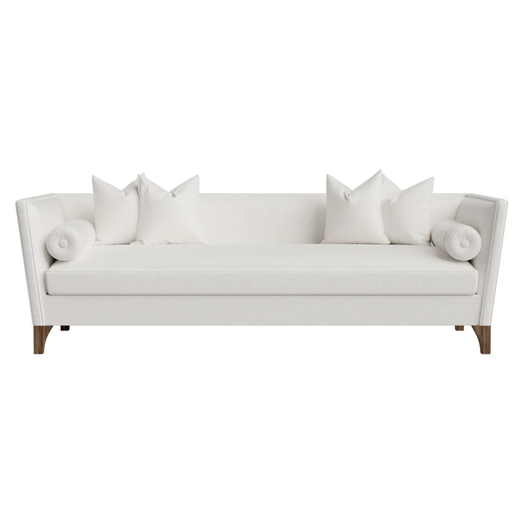 Steph is a classic design with all the comfort it requires. Like 'resting on a cloud' is the comment we got from customers sitting in it. It boasts a seamless down filled seat cushion and upholstered back. The armrests are slightly higher which gives an enveloping feeling white seated. The piping is intricate throughout the design features and comes in your choice of fabric and color to match your home. Steph is smart looking from all angles with no seam in back - this allows the sofa to be placed centrally in a room as the back of the sofa is as nice as it is from the front and from the side. Steph Sofa comes together with bolsters and scatter pillows.